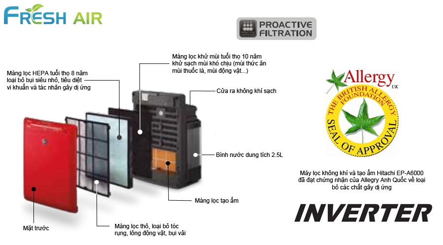 MÁY LỌC KHÔNG KHÍ VÀ TẠO ẨM HITACHI EP-A6000